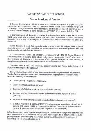 comunicazione ai fornitori su fatturazione elettronica
