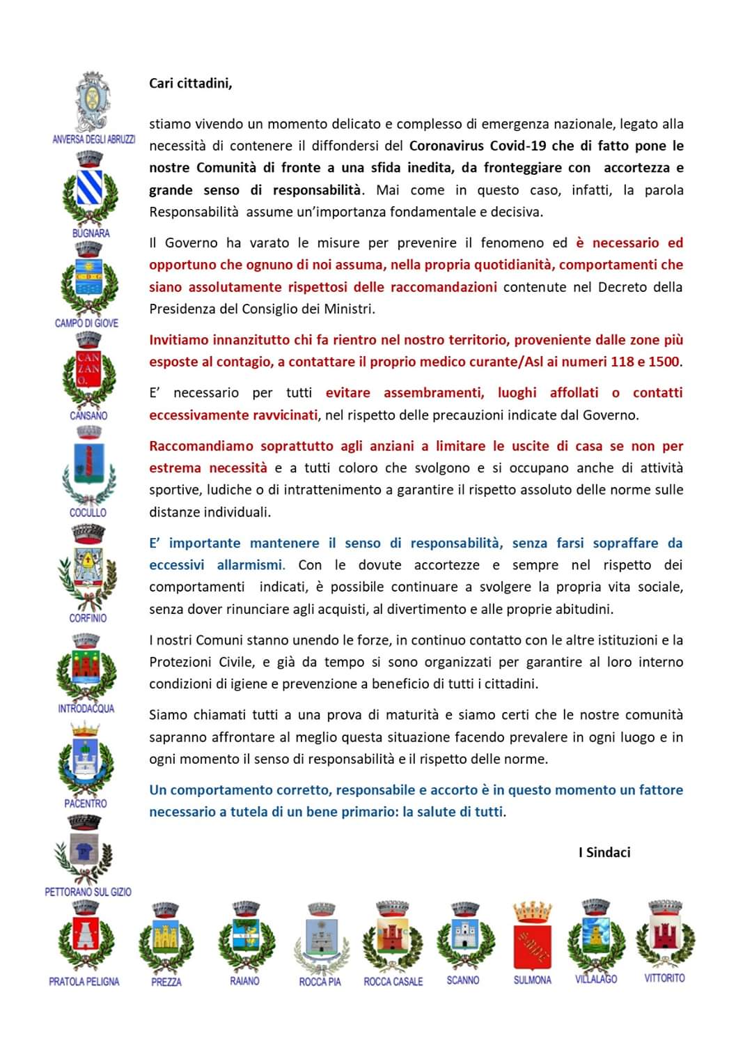 COMUNICAZIONE CONGIUNTA DEI SINDACI . COVID -19 " CORONAVIRUS"