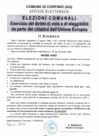 ESERCIZIO DIRITTO DI VOTO CITTADINI COMUNITARI